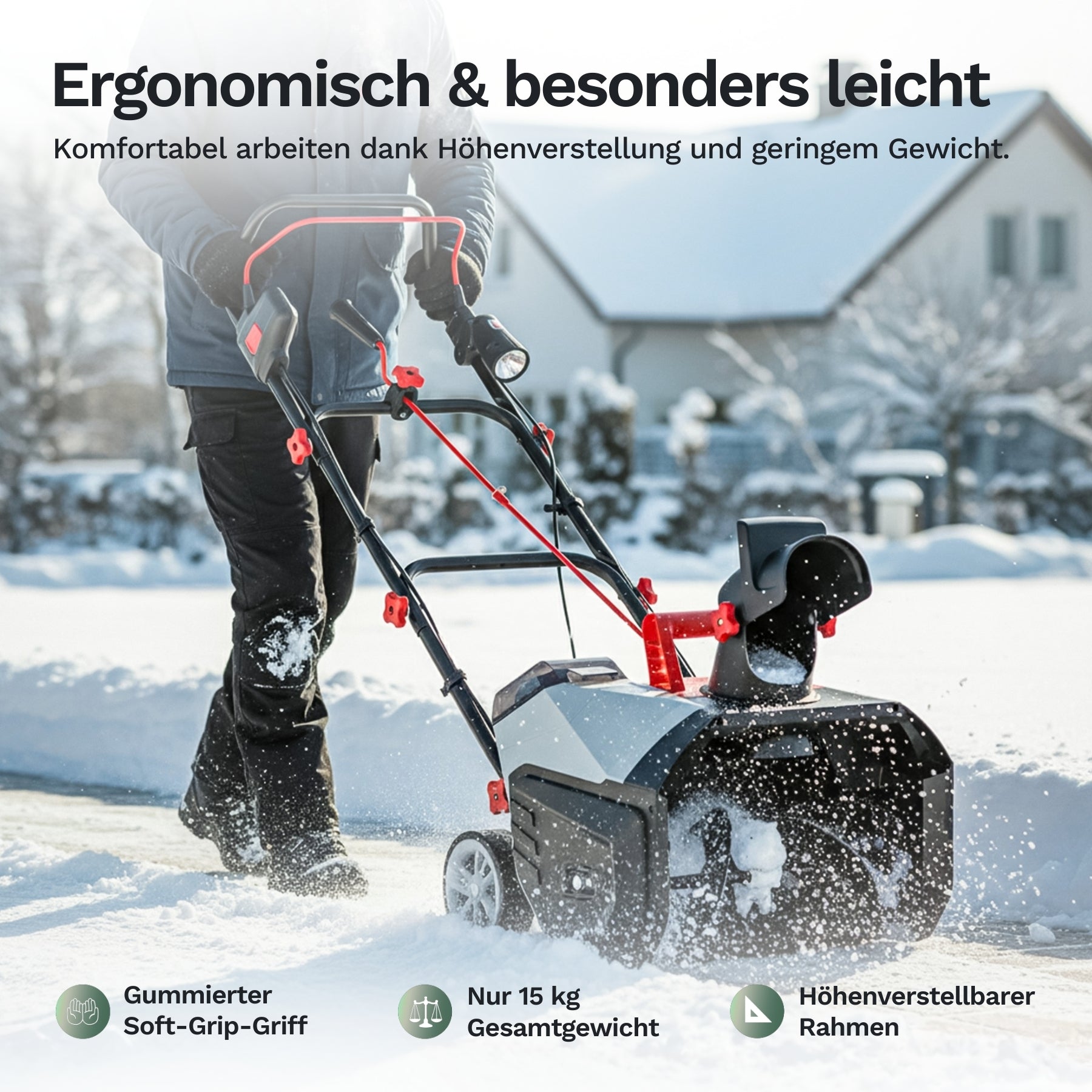 der Nutzer berichten von deutlich weniger körperlicher Anstrengung beim Schneeräumen.